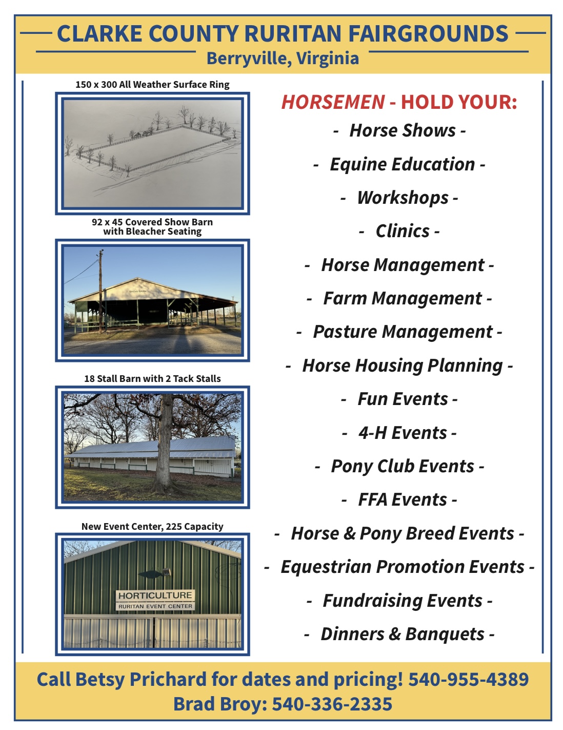 Our large fairgrounds may be rented in its entirety or just the area you need may be rented.